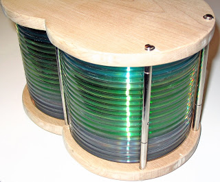 To make a nice looking lamp that uses CDs to shade the light. The lamp should be composed of two overlapping columns of CDs sandwiched between identical pieces of wood. It should be very energy efficient and output a reasonable amount of light (which implies LEDs).