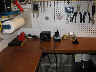 I also got some new tools a while ago. Note the precision screw driver holder made out of a plastic jar cap and the screw driver stand made out of a piece of wood I found in the garbage.