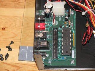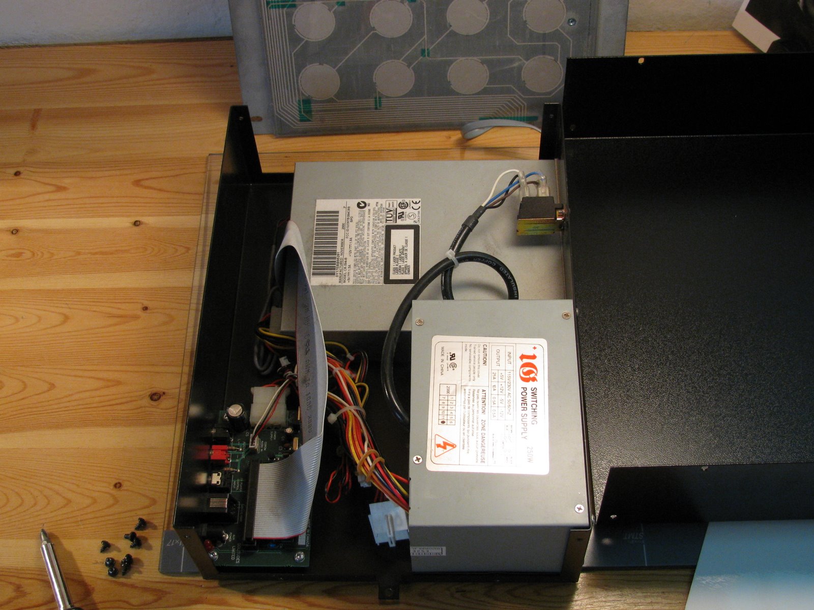 (BTW, I thing the pictures are much more enlightening than my explanation. They show the naked keypad, the back of the keypad with the microcontroller and dip switch position guide, the inside of the black box, and the IDE controller.)