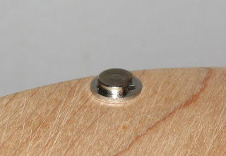 Drill the holes for the metal rods. Four of the rods will hold the exterior of the CDs and should go trough the good. The two remaining rods hold the CDs at their intersection. should not go through the wood (they should be only deep enough so the metal rods stay in place once the the top is in place).