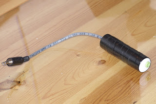 I drilled a hole on one end of the lipstick so the jack socket would fit tightly and stick out from it. The wire with the jack plug goes out of a hole on the other end of the lipstick.
