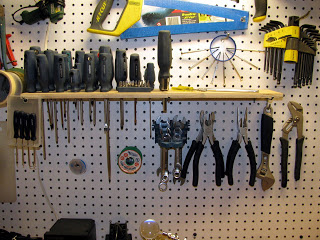 I also got some new tools a while ago. Note the precision screw driver holder made out of a plastic jar cap and the screw driver stand made out of a piece of wood I found in the garbage.