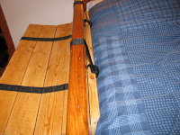 In order to attach the bedside table to the specific bed it was meant for, I used some more nylon rope and another piece of wood.