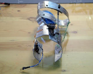 To build a very powerful LED flashlight mounted on my hand palm that would turn on and produce brighter light as I move my hand back (and the angle between my hand and my arm decreases and gets roughly to 90°). Also, the flashlight should be comfortable, allow my hand to move freely, be very sturdy, and of course look as much as possible like the repulsor Tony Starks wears on the picture above.
