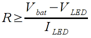 So, for the trivial case where we have a battery (V_bat) in series with a resistor (R) and an LED, the value of R must obey the following inequation: