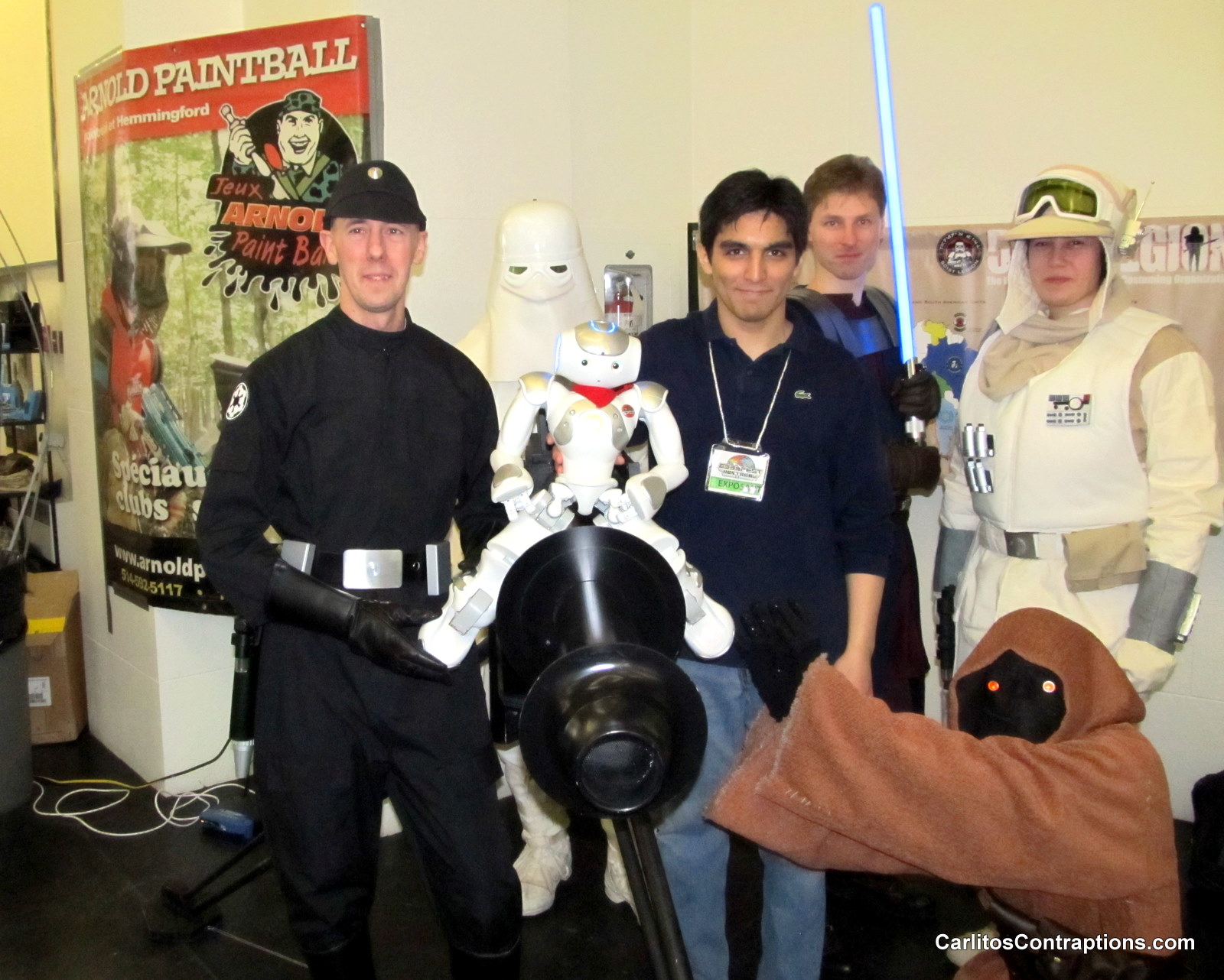 As announced before, we attended the Montreal Geekfest and Nao 1337 performed some dances and demos for all fellow geeks. We were placed right at the entrance and Nao 1337 had the mission of giving away free Geekfest pins. He could not do this though, since people preferred to see him greet them and dance. I have to thank my brother Alan for coming along and helping me with the presentation.